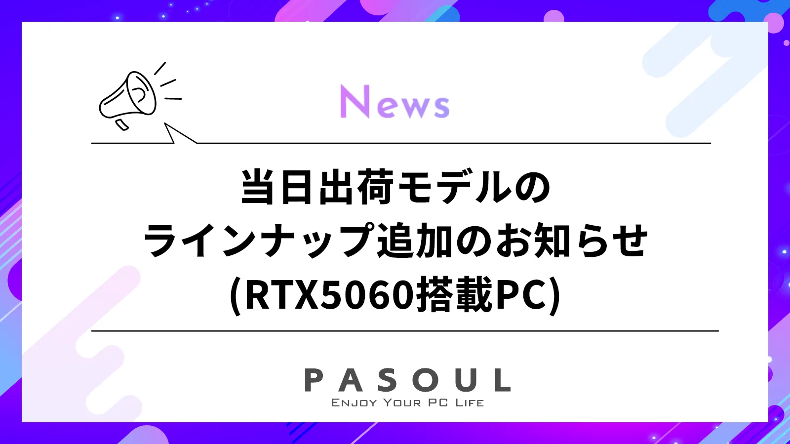 - 主な追加製品: RTX 5060搭載ゲーミングPC 他